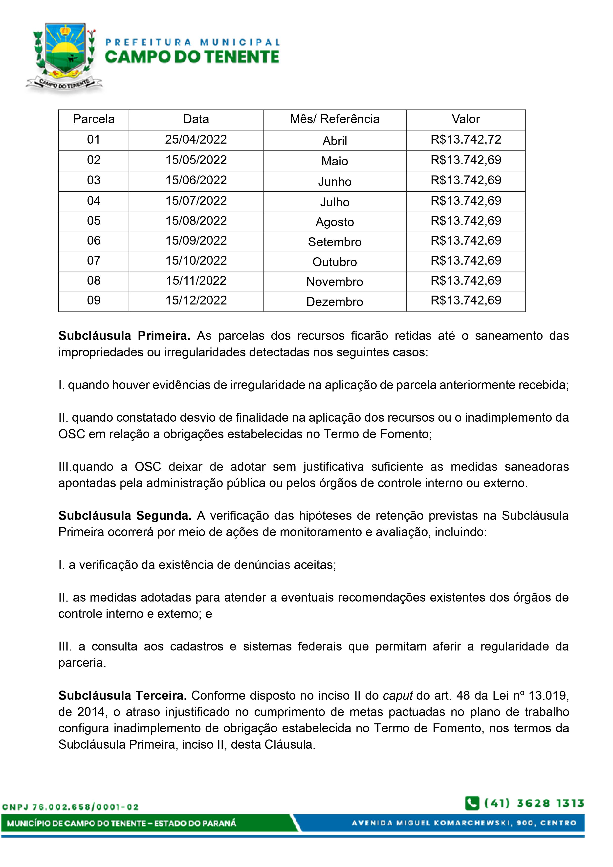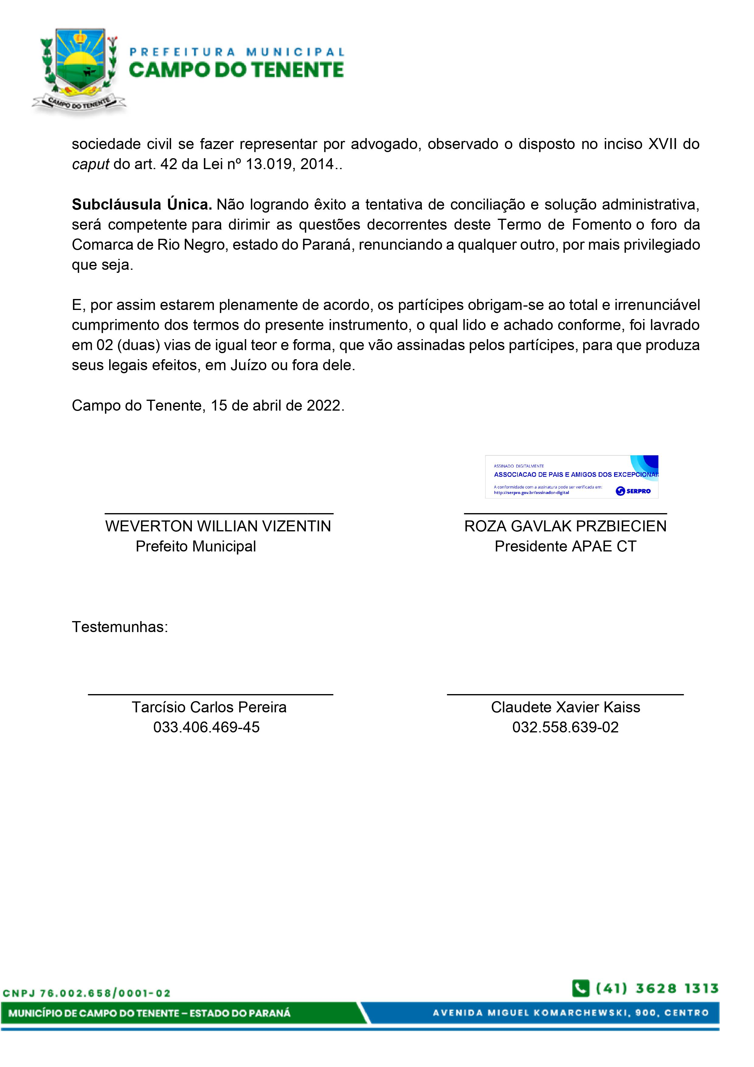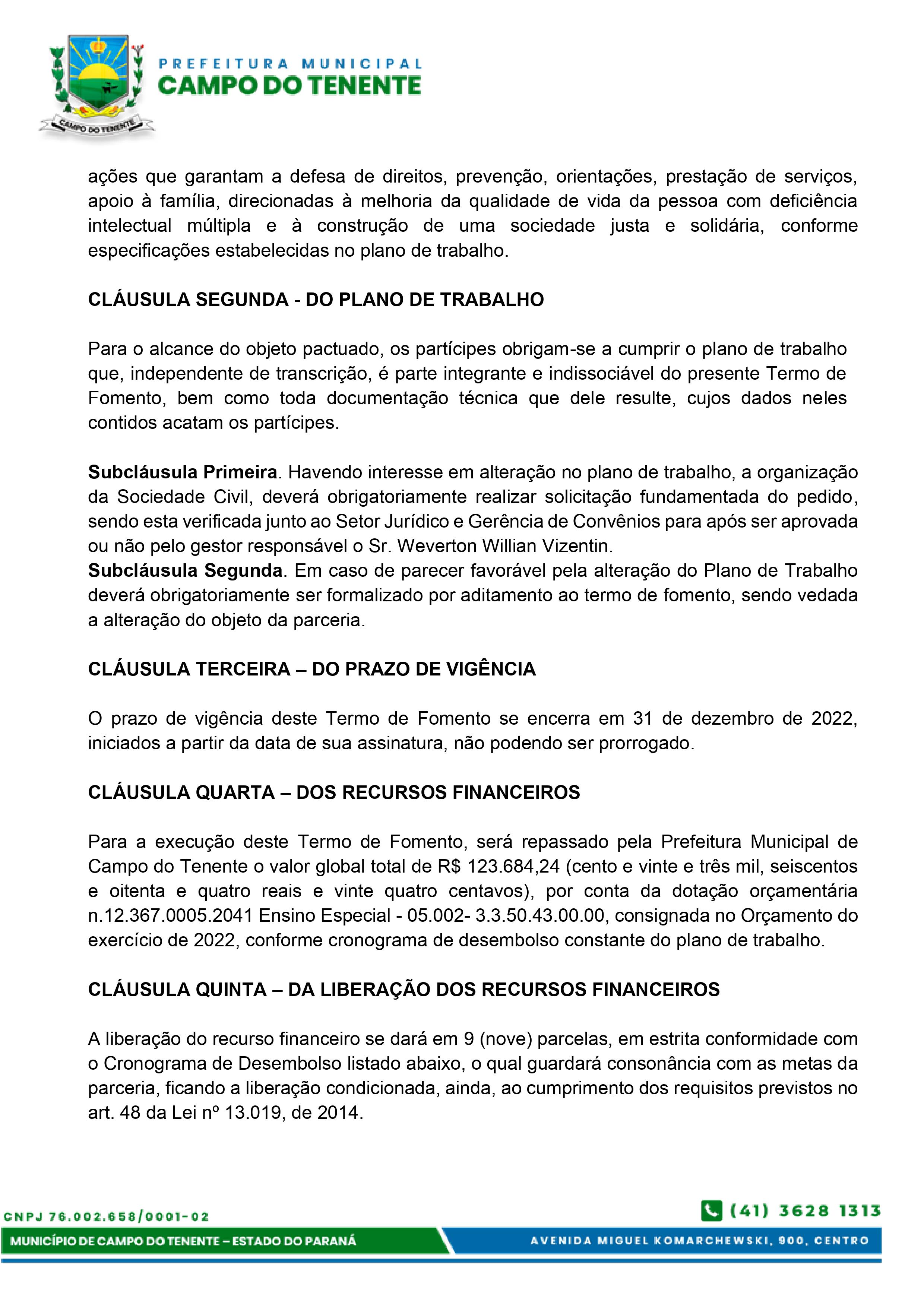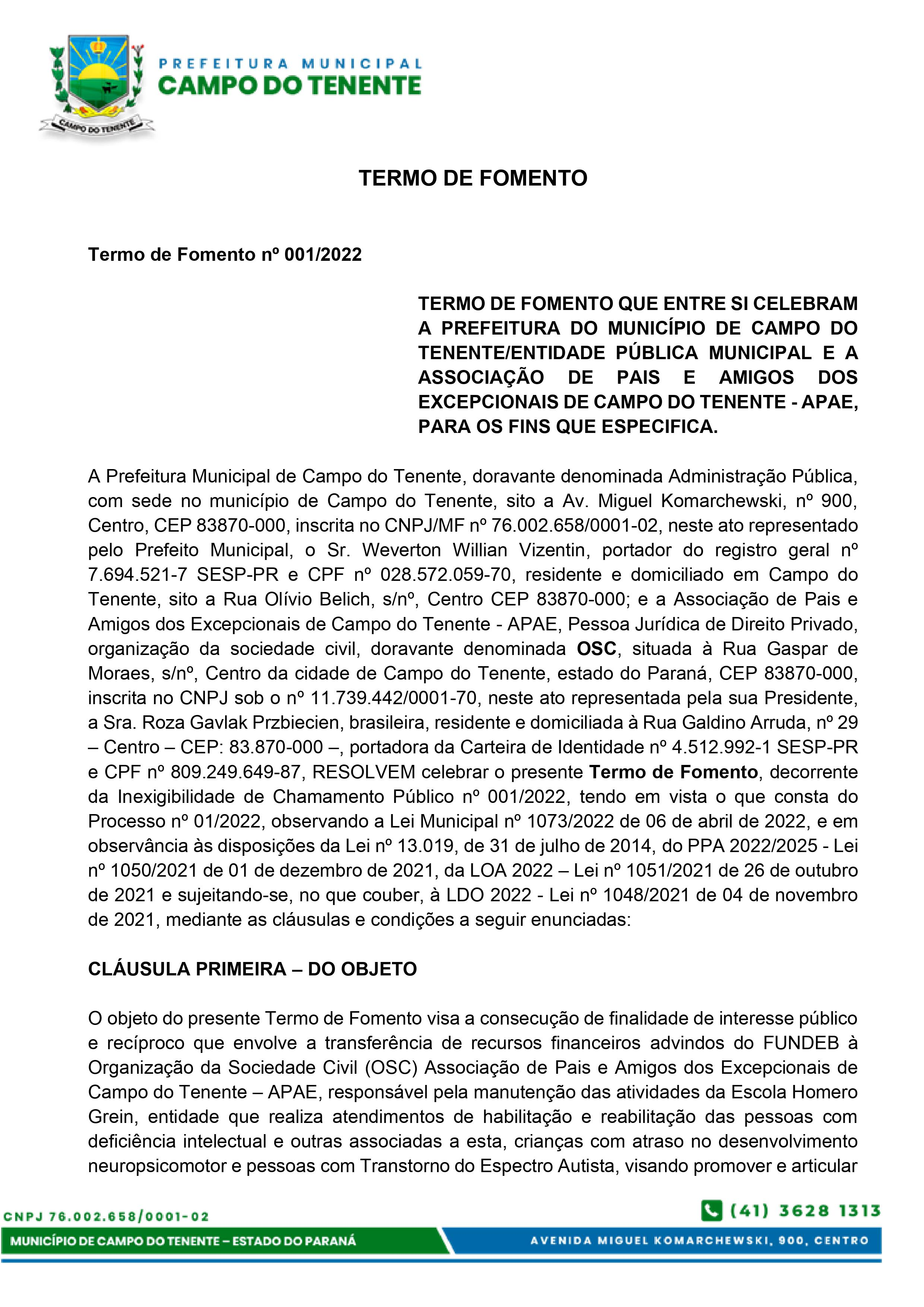 TERMO DE FOMENTO - Termo de Fomento nº 001/2022 e Plano de Trabalho 2022