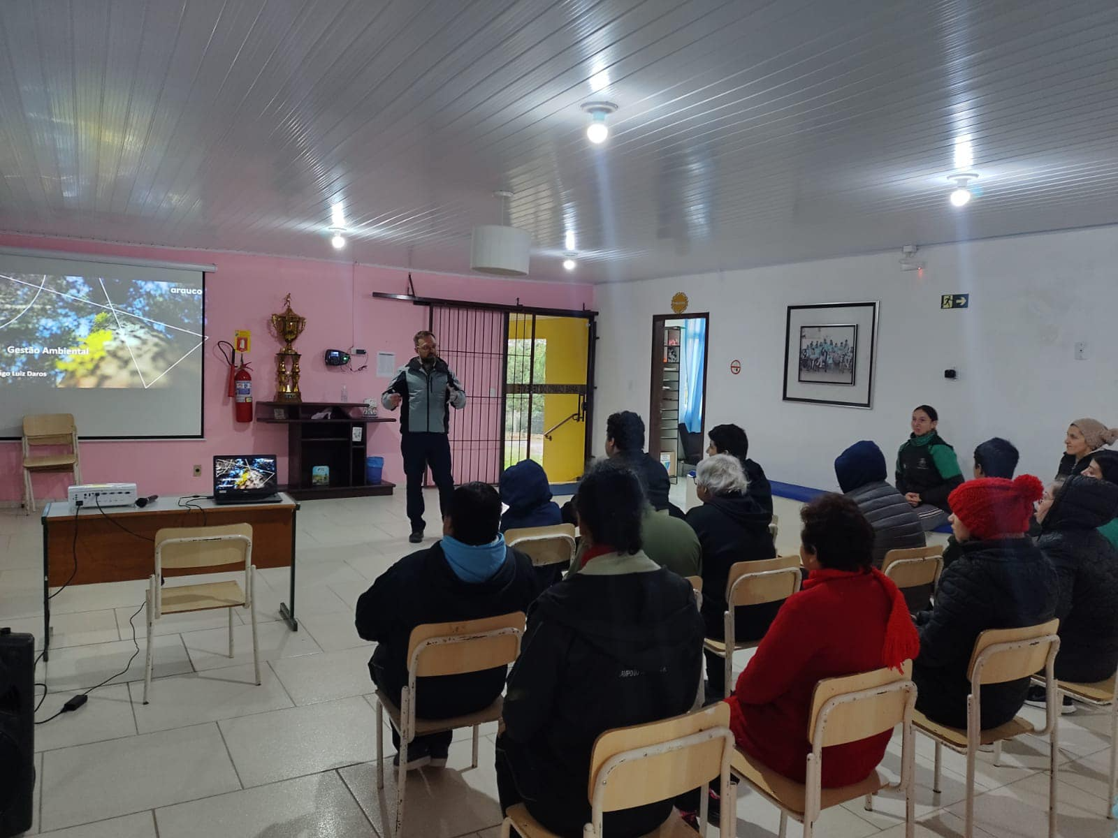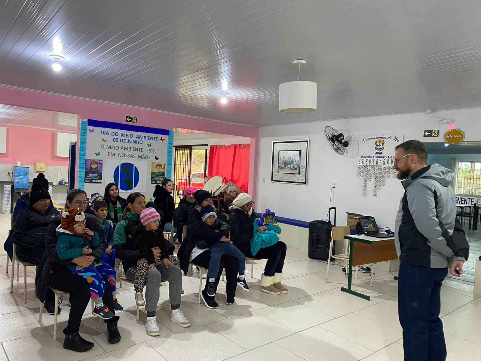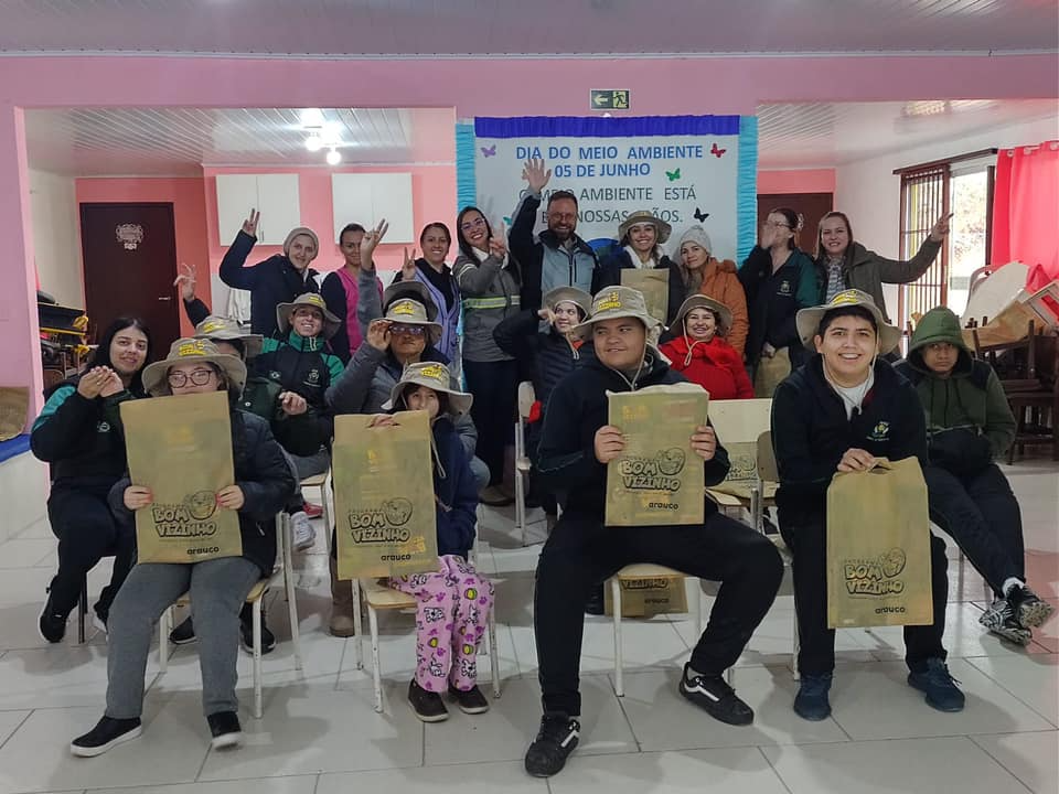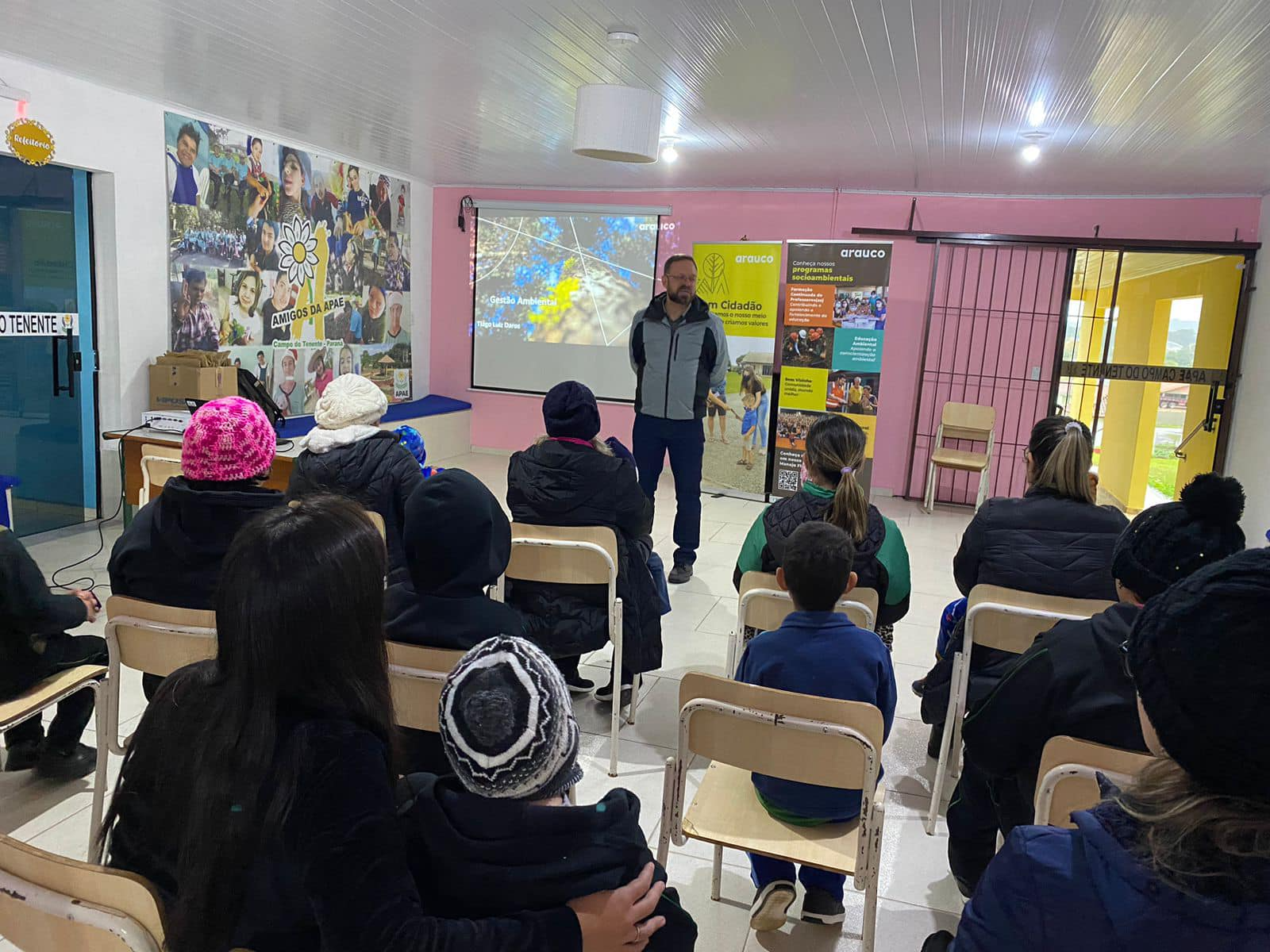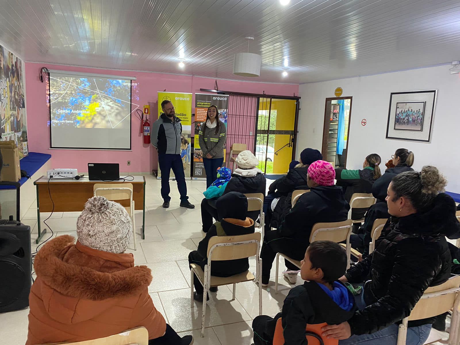 Palestra com o Thiago e a Suzilaine, representantes da empresa Arauco, trazendo questões importantes, voltadas a preservação do meio ambiente.