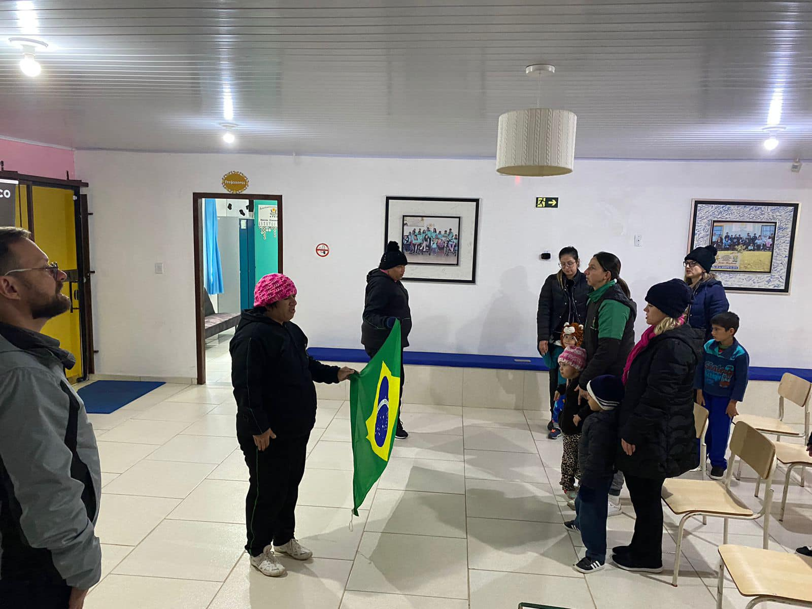 Sessão Cívica referente ao meio ambiente com a professora Suzana e a professora Roseni, turmas do período da manhã e tarde.